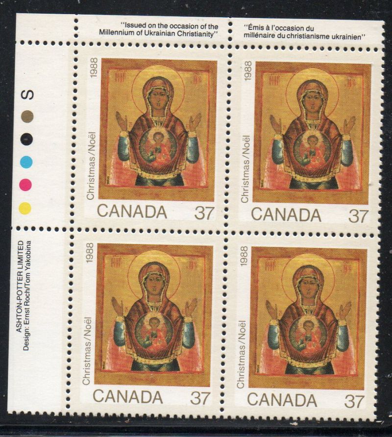 Canada Scott Catalogue number 1222 1988 37 cent Cjhristmas Upper Left Inscription Block of 4, Ashton-Potter Limited .