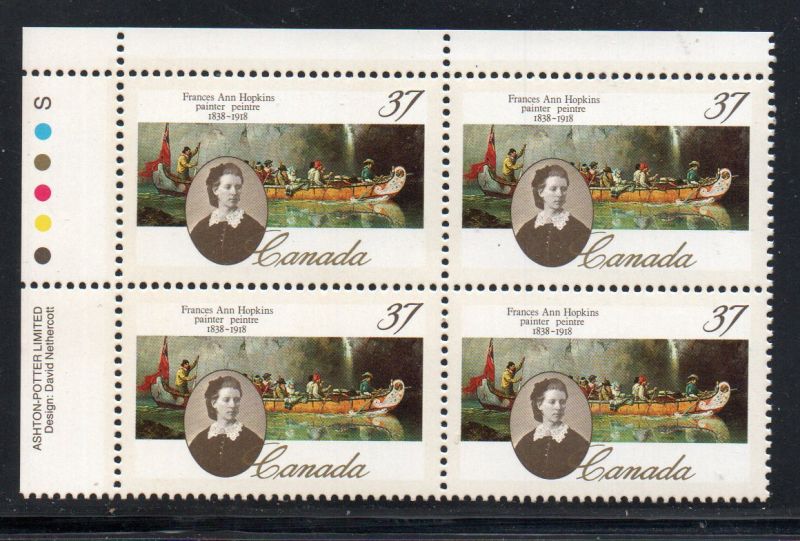 Canada Scott Catalogue number 1227 1988 37 cent Frances Ann Hopkins Upper Left Inscription Block of 4, Ashton-Potter Limited .