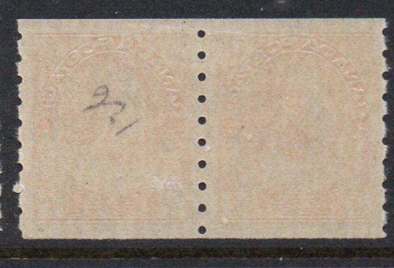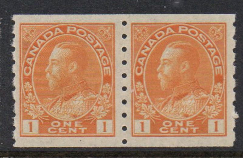 Canada Scott & Unitrade Catalogue number 126 19231 cent orange yellow George V Admiral issue coil stamp pair perforated 8 vertical.