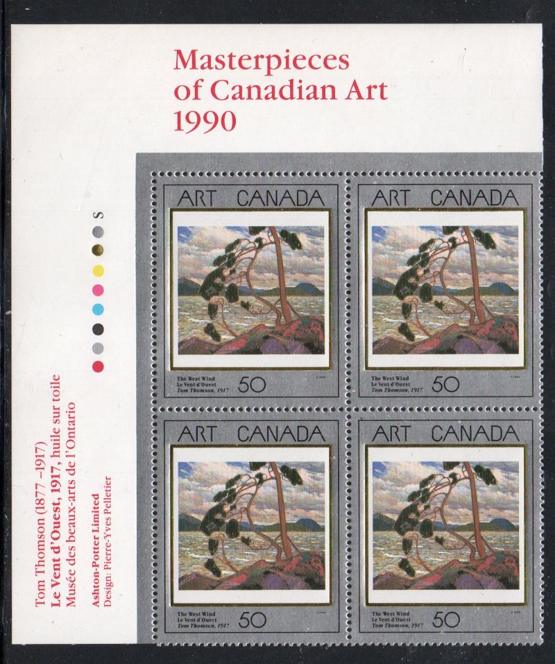 Canada Scott Catalogue number 1271 1990 50 cent Art stamp Upper Left Inscription Block of 4 .
