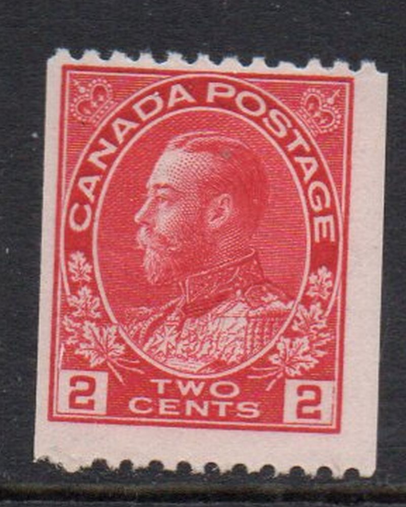 Canada Scott & Unitrade Catalogue number 132 1915 2 cent carmine George V Admiral issue coil stamp perforated 12 hortizontal.