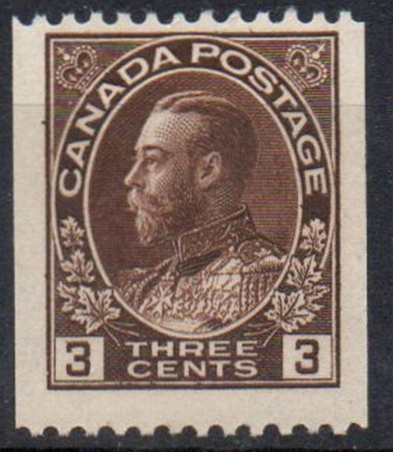 Canada Scott & Unitrade Catalogue number 134 1921 3 cent brown George V Admiral issue coil stamp perforated 12 horizontal