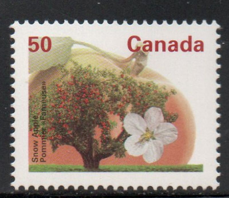 Canada Scott Catalogue number 1365 1994 50 cent Snow Apple stamp.Mint, fine to very fine original gum never hinged .Canadian Customers - no added GST/HSTUS customers - No tariffs on stamps sent by meMember Canadian Stamp Dealers Association