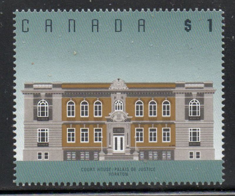 Canada Scott Catalogue number 1375 1994 $1 Yorkton Court House stamp.Mint, fine to very fine original gum never hinged .Canadian Customers - no added GST/HSTUS customers - No tariffs on stamps sent by meMember Canadian Stamp Dealers Association