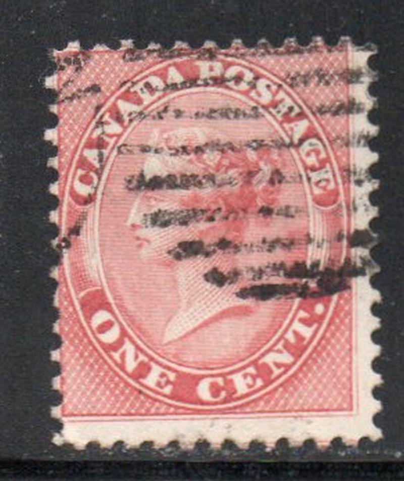 Canada Scott & Unitrade Catalogue number 14 1859 1 cent rise Victoria stamp .Used, very good .Member Canadian Stamp Dealers Association .Canadian Customers - I pay the GST/HST on your purchases from me .25-8-9.jpg