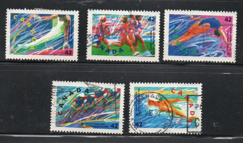 Canada Scott & Unitrade Catalogue number 1414-1418 1992 Summer Olympics stamp set .Used, fine, to very fine .Canadian Customers - no added GST/HSTUS customers - No tariffs on stamps sent by meMember Canadian Stamp Dealers Association