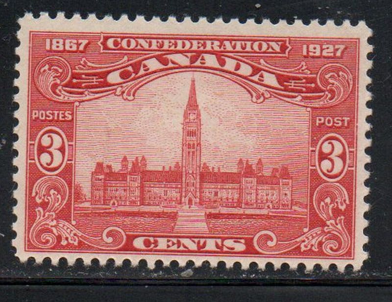 Canada Scott& Unitrade Catalogue number 143 1927 3 c Parliament Building stamp .Mint, fine original gum hinged .Member Canadian Stamp Dealers AssociationCanadian Customers - I pay the GST/HSt on your purchases from me .25-10-31.jpg