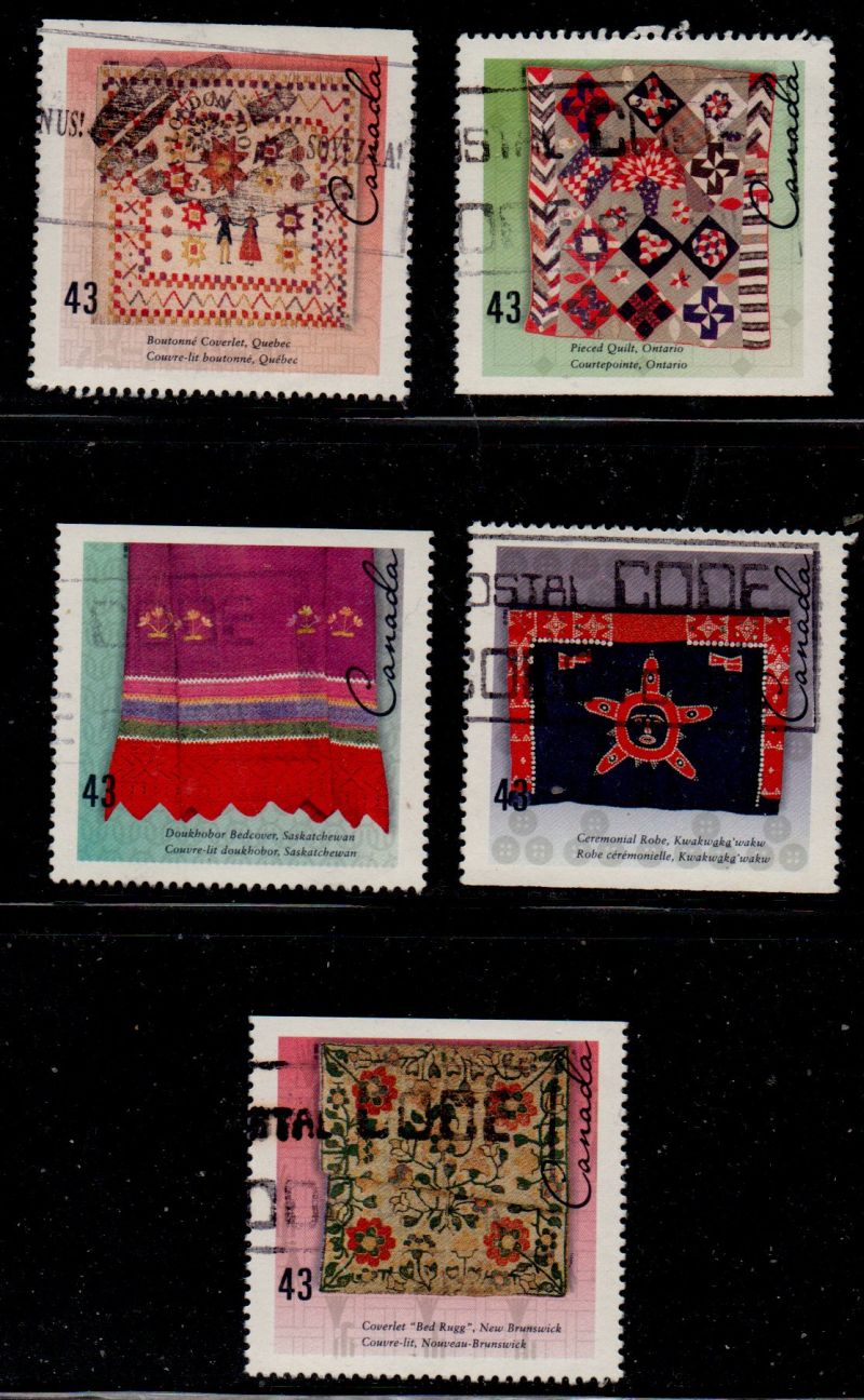 Canada Scott & Unitrade Catalogue number 1461-1465 1993 Hand Crafted Textiles stamp set .Used fine to very fine .Member Canadian Stamp Dealers Association .Canadian Customers - No added GST/HST on your purchases from me .