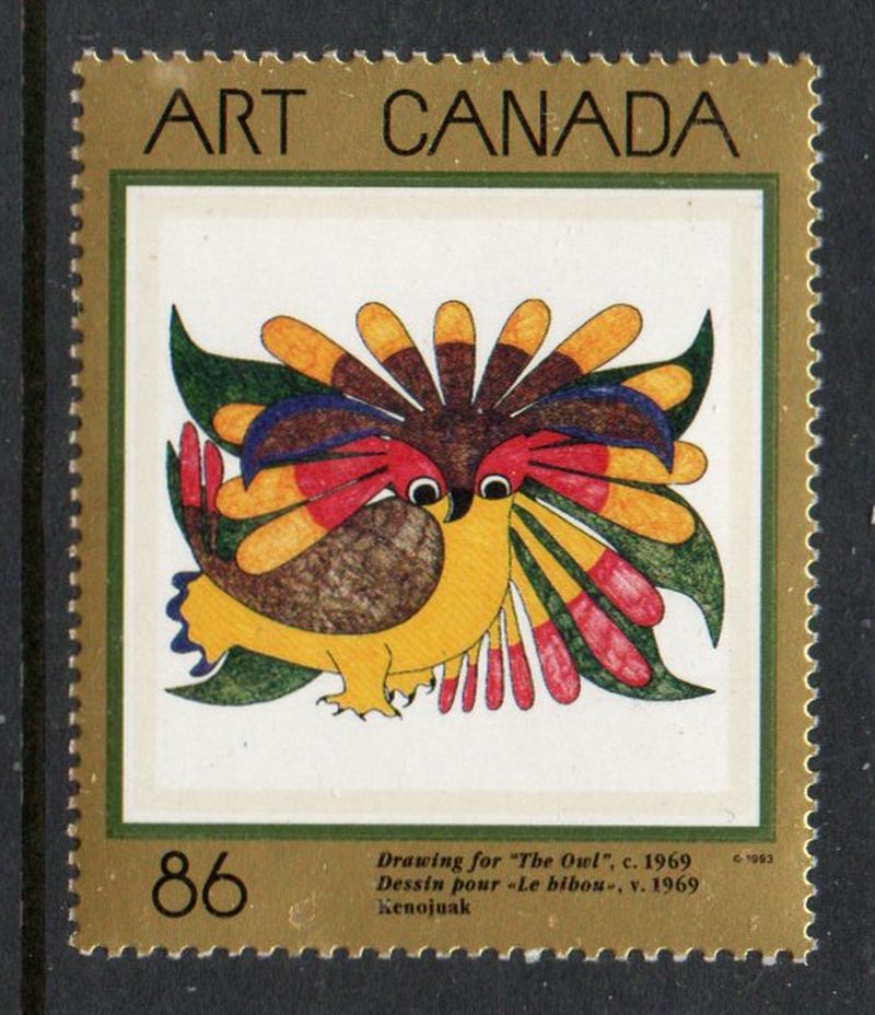 Canada Scott & Unitrade Catalogue number 1466 1993 Ashevak Owl Drawing stamp .Mint, fine to very fine, original gum never hinged .Member Canadian Stamp Dealers Association .Canadian Customers - No added GST/HST on your purchases from me .