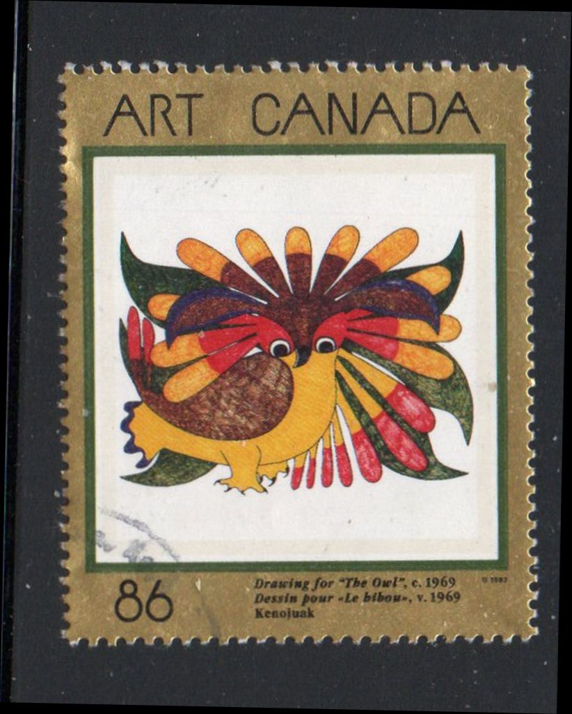 Canada Scott & Unitrade Catalogue number 1466 1993 Ashevak Owl Drawing stamp .Used, fine to very fine .Member Canadian Stamp Dealers Association .Canadian Customers - No added GST/HST on your purchases from me .