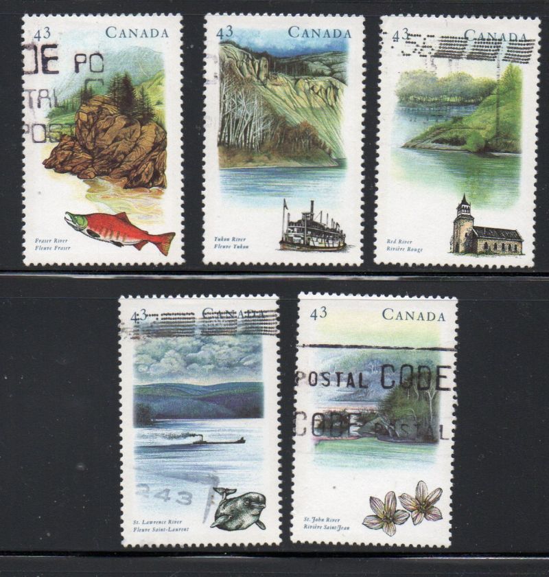 Canada Scott & Unitrade Catalogue number 1489a 1993 Canadian Rivers stamp set .Used, fine to very fine .Member Canadian Stamp Dealers Association .Canadian Customers - No added GST/HST on your purchases from me .