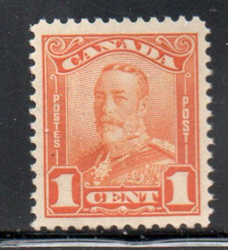 Canada Scott & Unitrade Catalogue number 149 1928 1 cent orange George V scroll issue stamp .