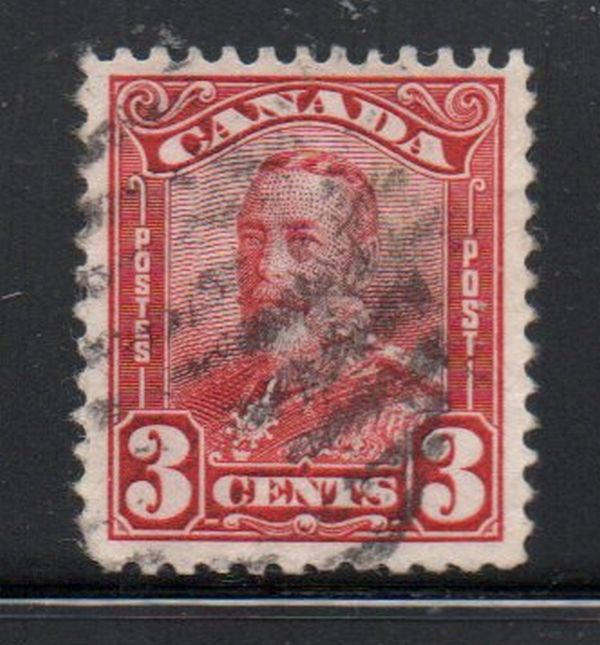 Canada Scott & Unitrade Catalogue number 151 1928 3c dark carmine George V scroll issue stamp.Used, fine.Canadian Customers - I pay the GST/HST for you19-1-90.jpg
