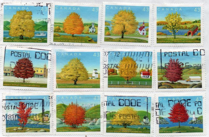 Canada Scott & Unitrade Catalogue number 1524a-1524l 1994 Canada Day MapleTress stamp set singles.