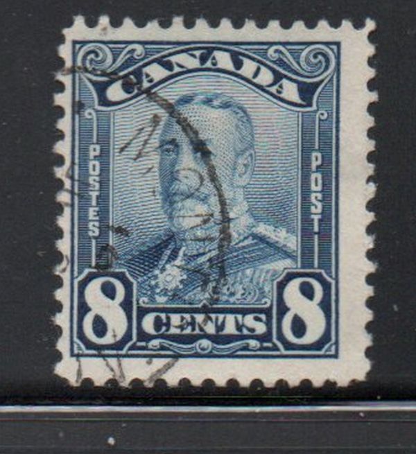 Canada Scott & Unitrade Catalogue number 154 1928 8c blue George V scroll issue stamp.Used, fine.Canadian Customers - I pay the GST/HST for you19-1-92.jpg
