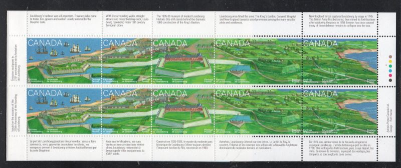 Canada Scott Catalogue number 1551a 1995 Fortress of Louisbourg stamp booklet pane .