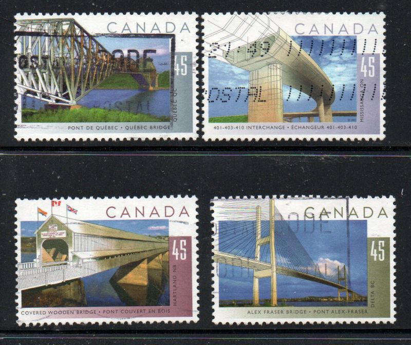 Canada Scott & Unitrade number 1570-1573 1995 Bridges stamp set .Used, fine to very fine .Member Canadian Stamp Dealers Association .Canadian Customers - I pay the GST/HST on your purchases from me .