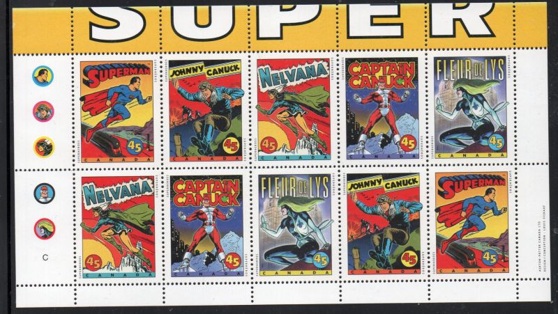 Canada Scott Catalogue number 1583b 1995 Superman & Canadian Super Heroes stamp booklet pane..