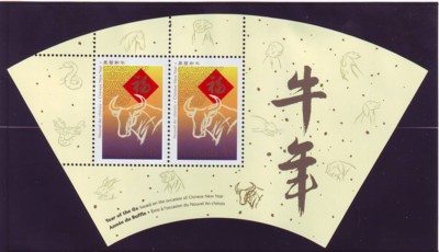 Canada Scott Catalogue number 1630a 1997 Year of the Ox stamp souvenir sheet .Mint, fine to very fine, original gum never hinged.Member Canadian Stamp Dealers Association .