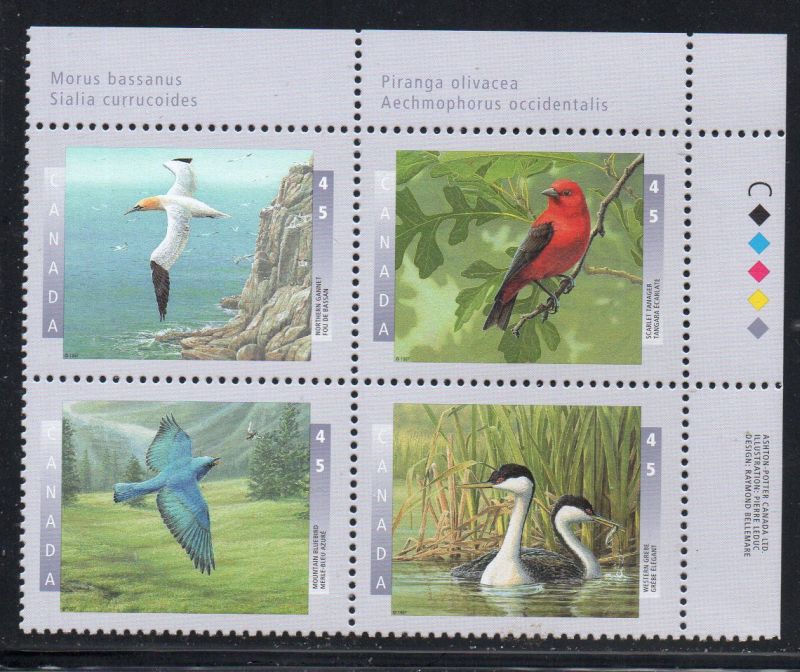 Canada Scott Catalogue number 1634a 1997 45 cent Birdds Upper Right Inscription Block of 4, Ashton-Potter Canada Limited .