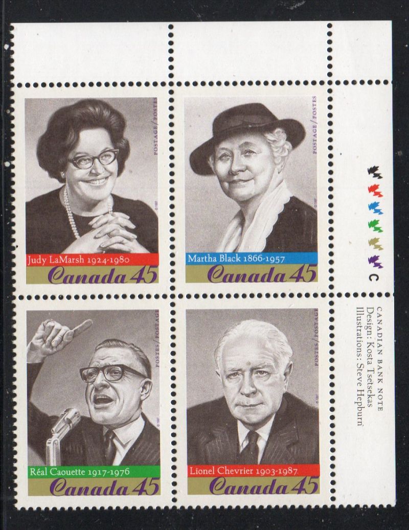 Canada Scott Catalogue number 1664b 1997 45 cent Famous Canadians Upper Right Inscription Block of 4, Canadian Bank Note .