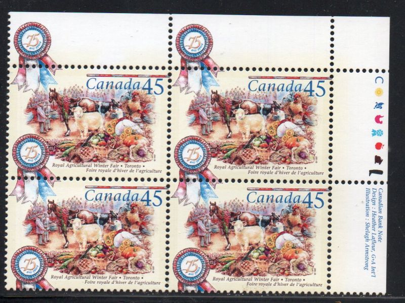 Canada Scott Catalogue number 1672 1997 45 cent Royal Agricultural Winter Fair Upper Right Inscription Block of 4, Canadian Bank Note .