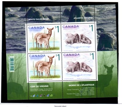 Canada Scott & Unitrade Catalogue number 1689b 2005 $1 Wild Animals stamp souvenir sheet.