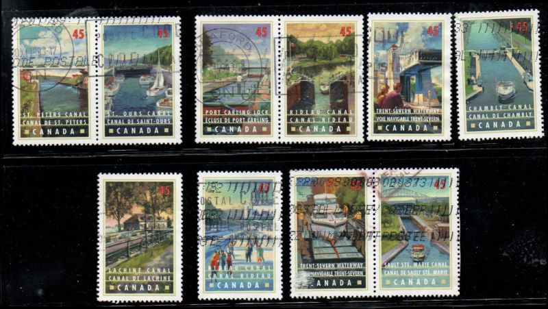 Canada Scott & Unitrade Catalogue number 1725-1734 1998 Canals stamp set .Used, fine to very fine .Canadian Customers - I pay the GST/HST on your purchases from me