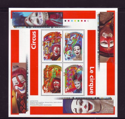 Canada Scott & Unitrade Catalogue number  1760b 1998 The Circus stamp souvenir  sheet .Mint, fine to very fine, original gum never hinged .Member Canadian Stamp Dealers Association .Canadian Customers - I pay the GST/HST on your purchases from me .