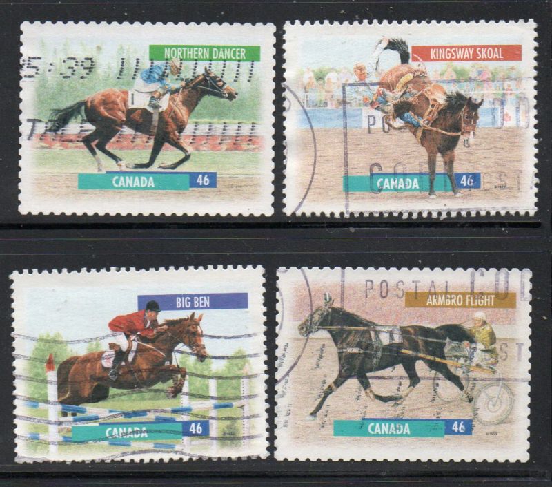 Canada Scott & Unitrade Catalogue number 171791-1794 1999 Horses stamp set.Used, fine, to very fine .Canadian Customers - no added GST/HSTUS customers - No tariffs on stamps sent by meMember Canadian Stamp Dealers Association