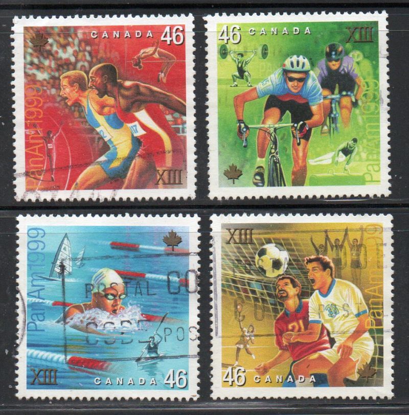Canada Scott & Unitrade Catalogue number 1801-1804 1999 Pan American Games stamp set.Used, fine, to very fine .Canadian Customers - no added GST/HSTUS customers - No tariffs on stamps sent by meMember Canadian Stamp Dealers Association