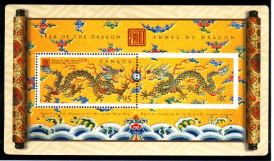 Canada Scott & Unitrade Specilalized Catalogue number 1837 2000 Year of the Dragon stamp souvenir sheet .