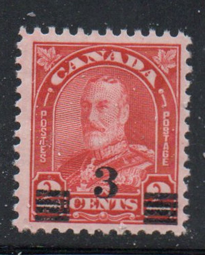 Canada Sc 191 1931 3 c on 2 c deep red G V stamp mint