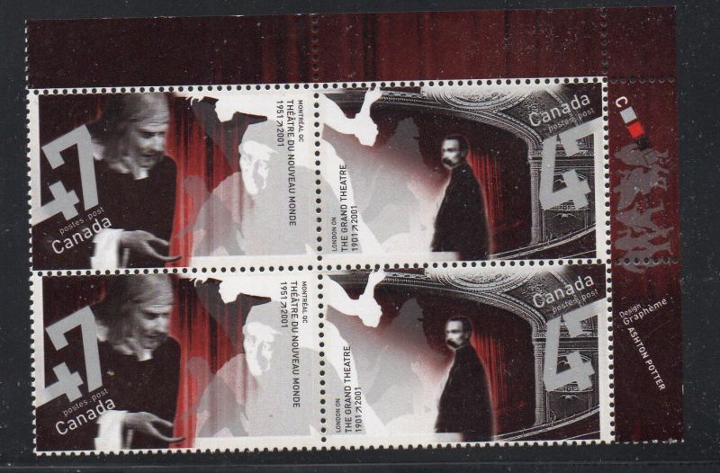 Canada Scott Catalogue number 1920a 47 cent 2001 Theatres Upper Right Inscription Block of 4, Ashton-Potter .