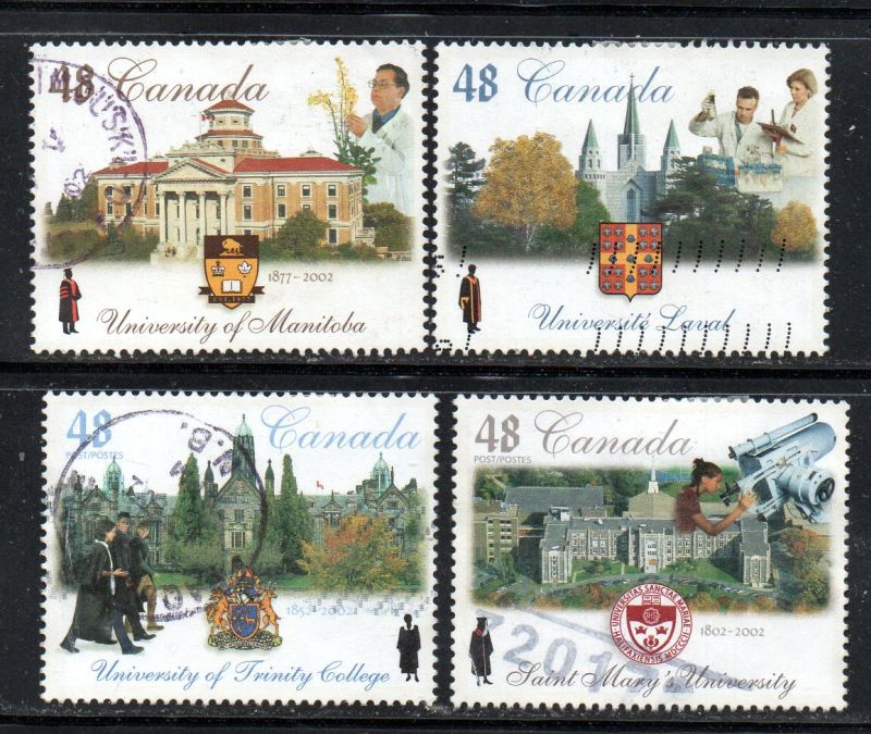 Canada Scott & Unitrade number 1941-1944 2002 Universities stamp set .Used, fine to very fine .Member Canadian Stamp Dealers Association .Canadian Customers - I pay the GST/HST on your purchases from me .