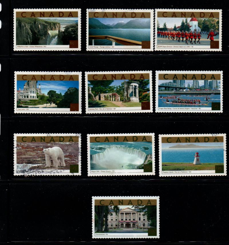 Canada Scott & Unitrade Specialized Catalogue number 1989a-1989e, 1990a-1990e 2003 Tourist Attractions stamp set .Used, fine to very fine .Member Canadian Stamp Dealers AssociationFree shipping on purchases over $50 going to North America .Canadian Customers - I pay the GST/HSt on your purchases from me .