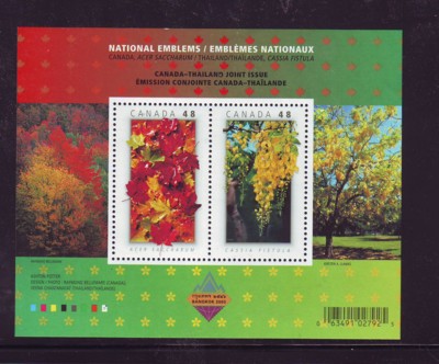 Canada Scott & Unitrade Specialized Catalogue number 2001b 2003 Canada & Thailand Flowers stamp souvenir sheet .Mint, fine to very fine, original gum never hinged.Member Canadian Stamp Dealers AssociationCanadian Customers - I pay the GST/HSt on your purchases from me .