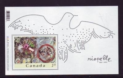 Canada Scott & Unitrade Specialized Catalogue number 2003 2003 Riopelle Painting stamp souvenir sheet .Mint, fine to very fine, original gum never hinged .Member Canadian Stamp Dealers AssociationCanadian Customers - I pay the GST/HSt on your purchases from me .