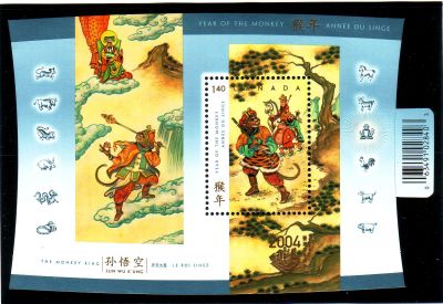 Canada Scott & Unitrade Specialized Catalogue number 2016a 2004 Year of the Monkey stamp souvenir sheet with overprint on selvedge.Mint, fine to very fine, original gum never hinged.Member Canadian Stamp Dealers AssociationCanadian Customers - I pay the GST/HSt on your purchases from me .