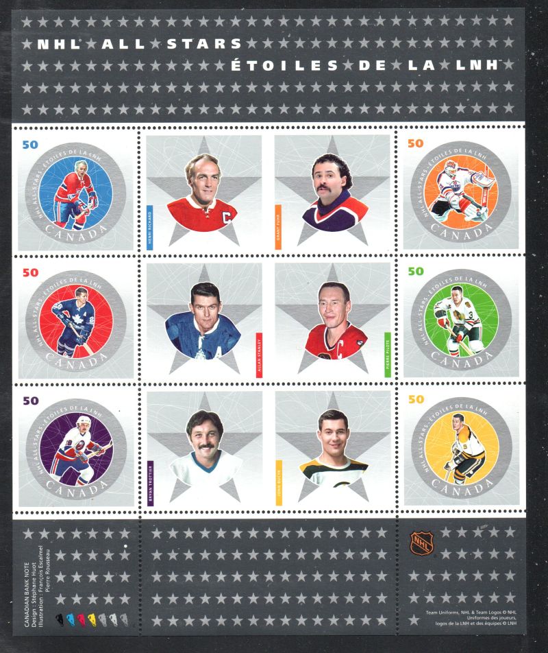 Canada Scott & Unitrade Catalogue number 2085 2005 National Hockey League All Stars stamp souvenir sheet .