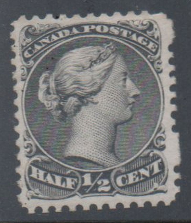 Canada Scott & Unitrade Catalogue number 21 1868 1/2 cent black large Queen Victoria stamp .