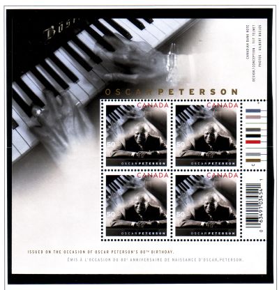 Canada Scott & Unitrade Catalogue number 2118a 2005 Oscar Peterson stamp souvenir sheet.