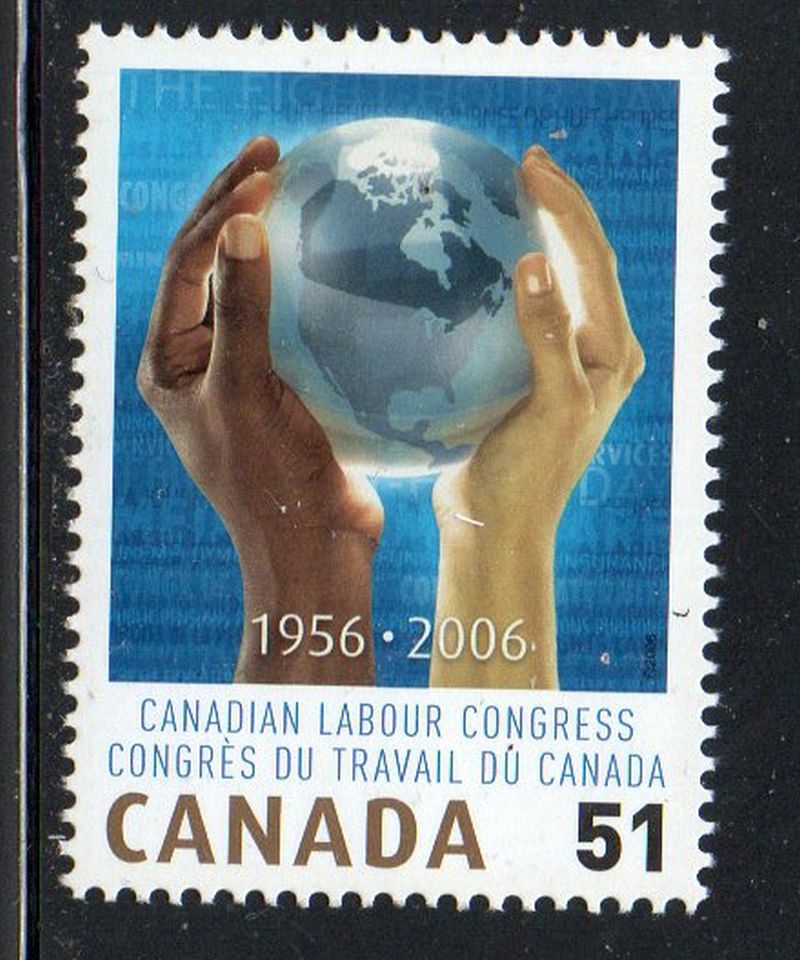 Canada Scott & Unitrade Catalogue number 2149 2006 51 cent 50th Anniversary Canadian Labour Congress stamp .Mint, fine to very fine original gum never hinged .Canadian Customers - I pay the GST/HST for youMember Canadian Stamp Dealers Association