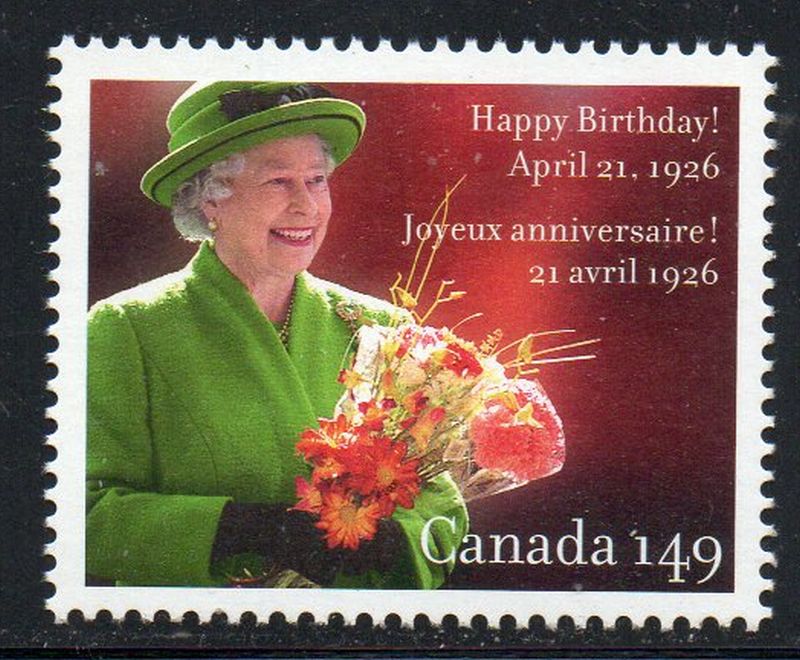 Canada Scott & Unitrade Catalogue number 2150a 2006 $1.49 80th Birthday QE II stamp .Mint, fine to very fine original gum never hinged .Canadian Customers - I pay the GST/HST for youMember Canadian Stamp Dealers Association