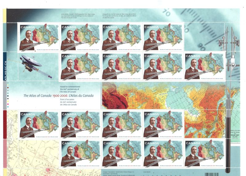 Canada Scott & Unitrade Catalogue number 2166 2006 100th Anniversary Atlas of Canada stamp sheet of 16.