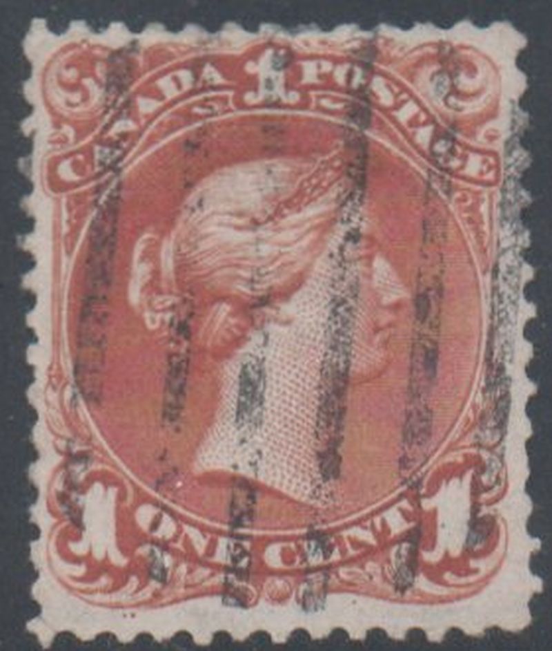 Canada Scott & Unitrade Catalogue number 22 1868 1 cent brown red large Queen Victoria stamp .