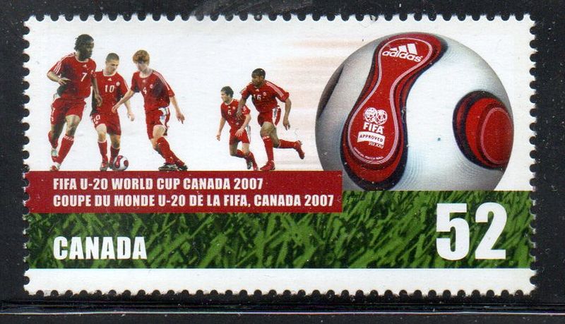 Canada Scott & Unitrade Catalogue number 2220 2007 FIFA World Youth Championships stamp .Mint, fine to very fine original gum never hinged .Canadian Customers - I pay the GST/HST for youMember Canadian Stamp Dealers Association