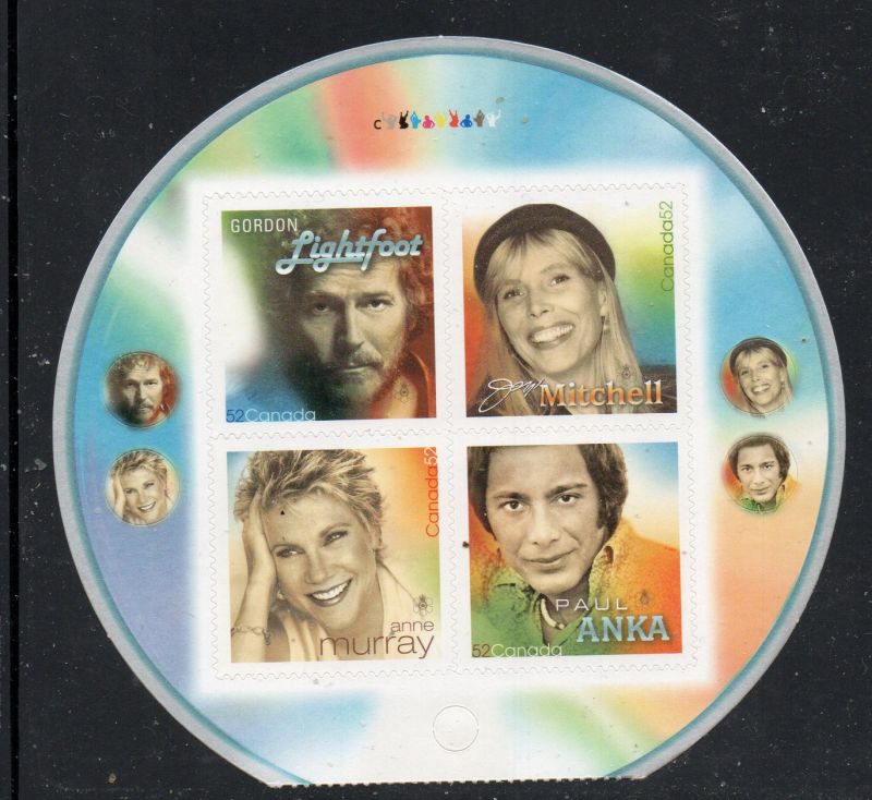 Canada  Scott & Unitrade  Catalogue number 2222 2007 Recording Artists stamp booklet pane.Mint fine to very fine, original gum never hinged .Member Canadian Stamp Dealers Association .Canadian Customers - I pay the GST/HST on your purchases from me .