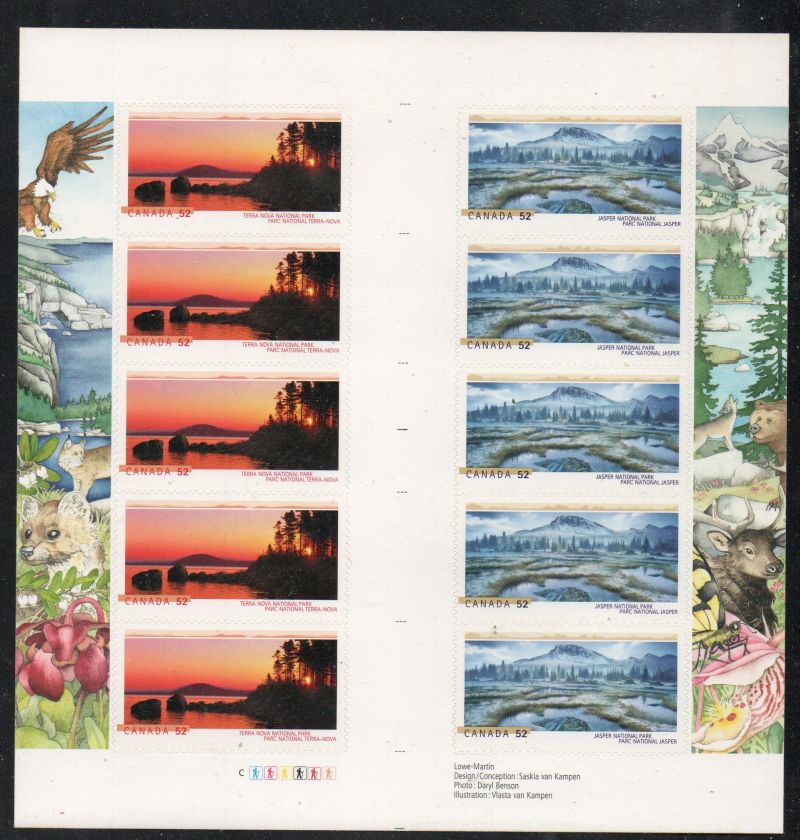 Canada  Scott & Unitrade  Catalogue number 2224b 2007 National Parks self adhesive  stamp booklet gutter pane.Mint fine to very fine, original gum never hinged .Member Canadian Stamp Dealers Association .Canadian Customers - I pay the GST/HST on your purchases from me .