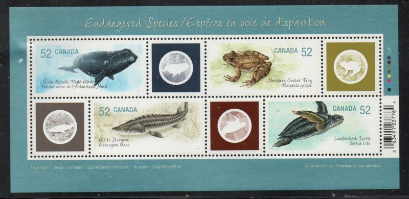 Canada  Scott & Unitrade  Catalogue number 2229 2007 Endangered Species stamp souvenir sheet.Mint fine to very fine, original gum never hinged .Member Canadian Stamp Dealers Association .Canadian Customers - I pay the GST/HST on your purchases from me .